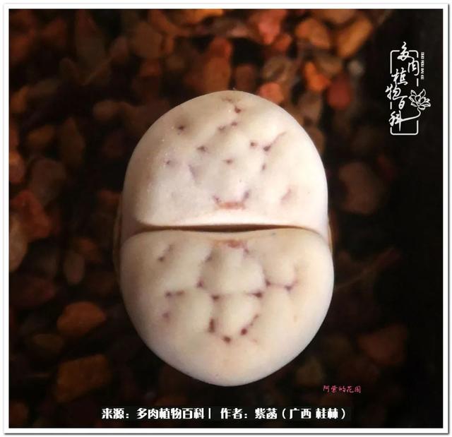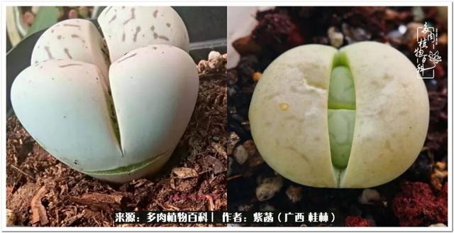 生石花给水过多或缺乏光照是很容易徒长的,特别是寿丽系、茧形玉和菊纹章。