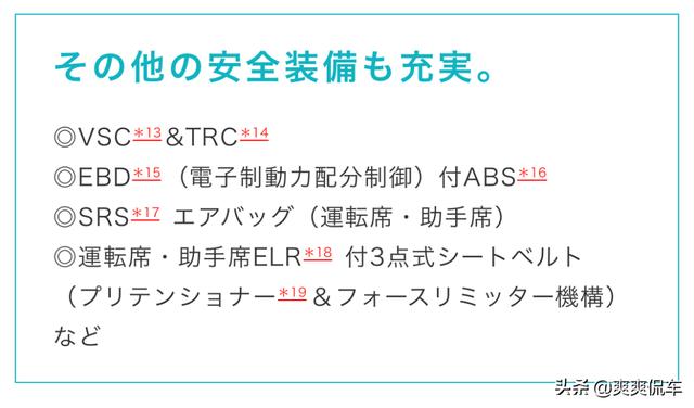 同时,这辆车还配备了大量的越级安全配置,比如前排双气囊,ABS,TCS,三点式安全带等等 - 即便是小型车也毫不妥协