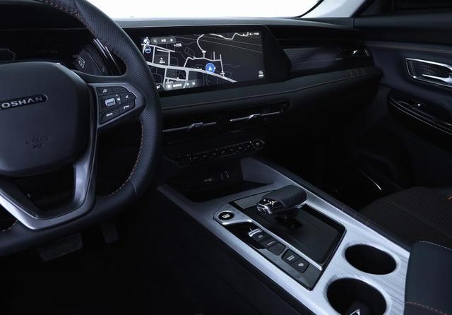 内饰部分长安欧尚X7 PLUS的设计整体走的是简洁路线,采用深色系搭配,副驾驶侧依然采用了哑光质感的砂感皮,当然最吸睛的还是这块12.3英寸的中控屏,画面显示很清晰,使用也很流畅。可以下载安装自己的APP,平时媳妇在车里玩个游戏、刷个抖音也是打发时间的好办法。