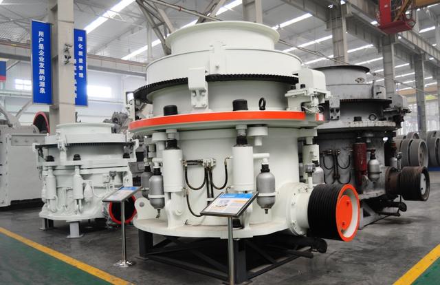 2、圆锥破碎机:针对较硬的石料进行中碎加工,多种系统可供用户选择,比较先进的单缸液压圆锥破、全液压圆锥破,相对便宜的多缸液压圆锥破、复合式圆锥破,产量范围比较大,合适用在大产量的生产线上。