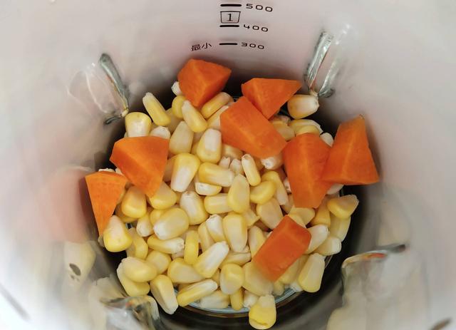 *新鲜玉米粒 90克,一片一厘米厚的胡萝卜切丁,