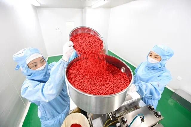 在贵州省贵阳德昌祥药业有限公司内,技术人员正在固体制剂车间生产。贵州日报当代融媒体集团记者 陈慧 摄