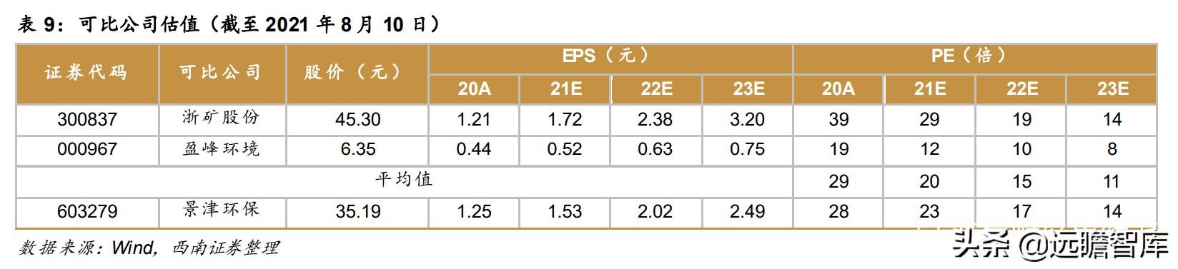 目前,A 股上市公司中,与公司业务相近的主要有浙矿股份和盈峰环境,浙矿股份是国内中高端破碎、筛选成套设备供应商,盈峰环境主要包括智能环境装备与智慧环境服务两大业务板块,2 家可比公司2021-2023年平均 PE 分别为20、15、11倍。