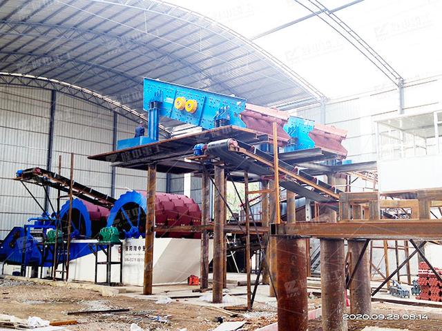 1、砂水混合物进入洗砂机清洗箱,由叶轮分离机进行分离,然后合格物料进入下层脱水筛进行脱水处理;