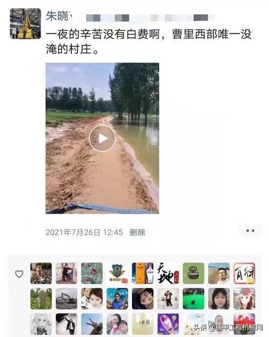 甲友@朱晓飞家在周口,河南暴雨来袭,第一时间,他派上自己的四台挖机,参与抢险救灾,在险情排除之后,他只说了一句话:“默默付出的大有人在,咱不过是其中一个”。在朱晓飞的挖机连续作业24小时不停机、在河堤上干了三天三夜之后,他和伙伴们筑起一条堤坝,保护了几个村,这些地方一滴水都没进,挽回了村民的财产损失。可惜的是,他的朋友一台挖机大臂都淹没了没有人赔付。