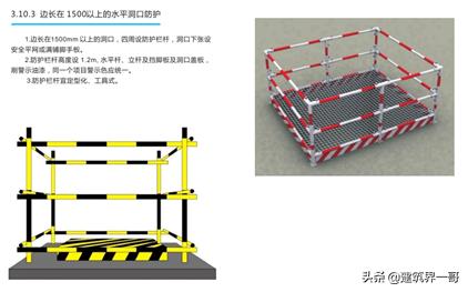(7)在混凝土墙体、平板上有预留洞时,应在模板拆除后,随时在墙洞上作做好安全护栏,或加盖板。