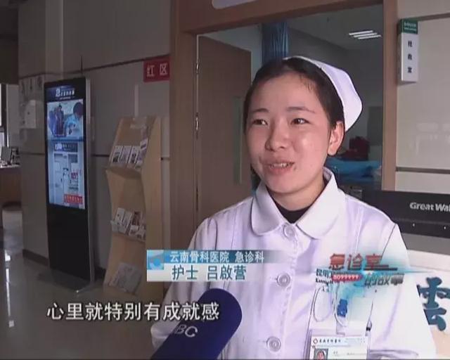 云南骨科医院 急诊科 护士 吕啟营:“才来实习没见过特别多的病人,当时就特别紧张,不知道做什么,这个医院比较重的就是颅脑损伤,愣在那里,不知道怎么处理,基本上都是看老师怎么处理 ,然后学习,老师特别迅速,更加坚定我成为一名正式的护士,本来病人受伤就特别苦,然后通过自己护理,看到他出院就觉得特别有成就感。”