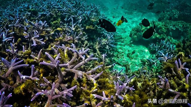 在东南沿海已经很少能见到活珊瑚群落了,大多都是死亡白化的珊瑚,而在澎湖只要离开海边几百米,就能看到成片的活珊瑚群落,能够见到规模巨大的桌形轴孔珊瑚,它们很像水下的绿色灵芝森林,都是带有颜色的珊瑚群。