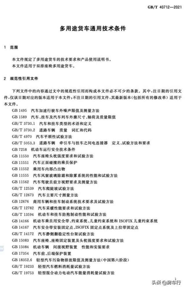 首先在《多用途货车通用技术条件》正式文件的开头部分便明确规定了其适用范围为双排座椅多用途货车,这也意味着,单排座椅的皮卡将不在多用途货车的涵盖范围内,诸如国产自主品牌单排皮卡北京F40等以及平行进口单排皮卡等均被排除在外。