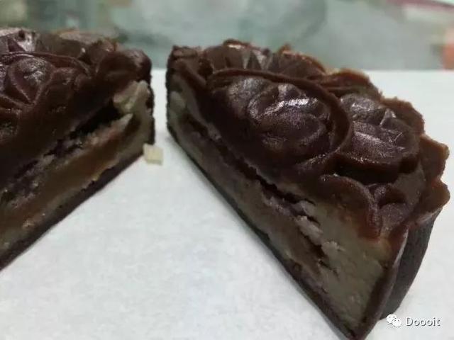 这个最外面一层是莲子馅混上可可粉,中间是纯的莲子馅,中间是巧克力馅料~