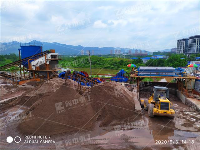 (1)生产方案肇庆挖斗洗砂机哪家有:给料机+轮式洗砂机+螺旋洗砂机/滚筒洗砂机+振动筛+输送机