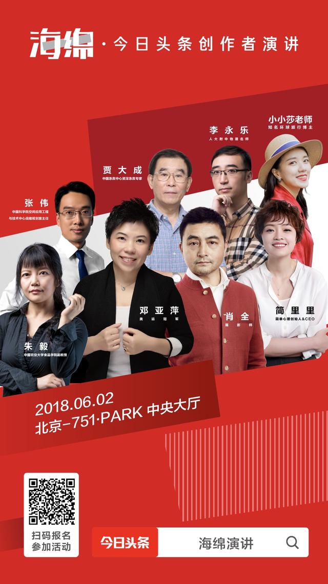 每场“海绵”演讲,我们会邀请 8 位不同领域的头条号创作者来演讲,他们可能是来自科学、医学、心理学、体育等领域的资深专家,也可能是在旅游、美食、游戏、时尚界炙手可热的网络红人。他们将在现场分享各自的故事与经历,和对自己所处领域独到的智识与见解。