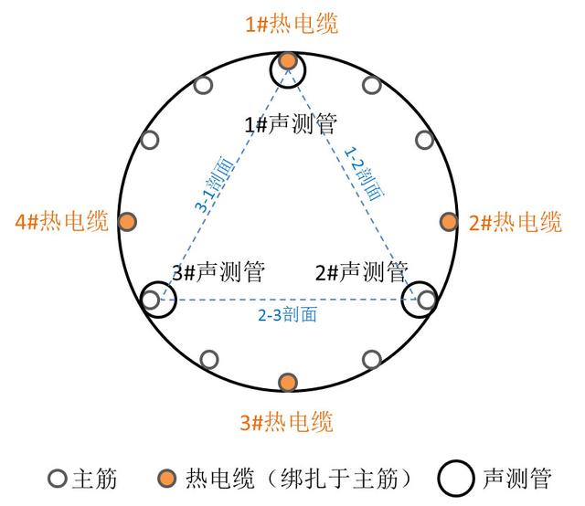 热电缆上有热感应传感器,间隔30cm。现场把热电缆绑扎在主筋侧面,从桩底至桩顶,桩顶外伸部分的接头外接数据采集盒。