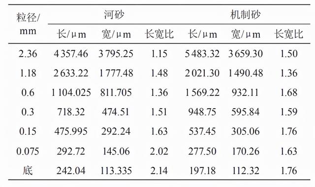 河砂与机制砂长、宽及长宽比