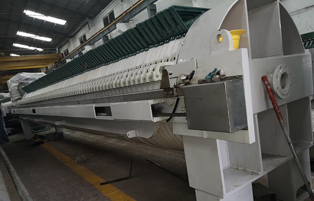隔膜压滤机的外观与普通的板框过滤机类似,其框架系统的作用也类似:为液压系统、滤板系统提供支撑。