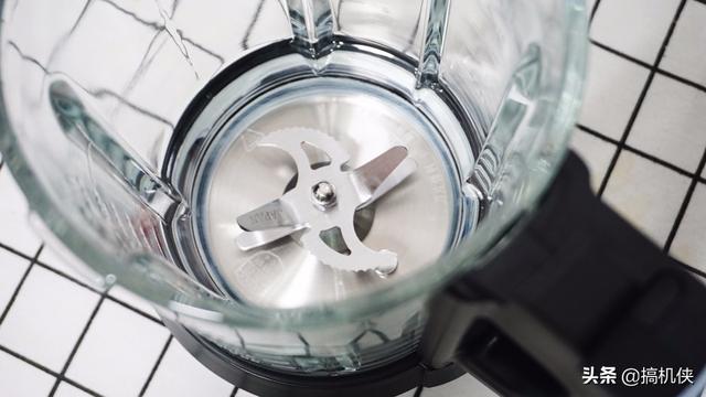 黑色下半部分是刀座部分,也是整台破壁机的关键部分,采用日本川崎刀头组,锯齿状精钢太极旋风刀,刀坚硬力强劲,刀片厚度约为2.05mm,对比起普通的榨汁机,刀片明显要厚实一些。底部刀盘同样采用304不锈钢制作,一体成型发热刀盘,边搅拌边加热,简单制造美味。
