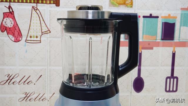 破壁机的搅拌杯重达2.7kg,尺寸约为215mm×155mm×260mm,加厚的透明层采用高硼硅玻璃制造,厚约6mm。高硼硅玻璃应变温度在520℃,不仅坚固耐磨防爆裂,而且还耐寒耐高温,使用起来安全有保障。杯外标刻有水位刻度,支持冷饮最高1750ml容量,热饮1400nl容量。搅拌杯壁设计有6条棱柱扰流条,在搅拌过程中,形成多重角度撞击,能够让食物涡流快速循环,反复与刀座撞击切割,增强破壁效果。