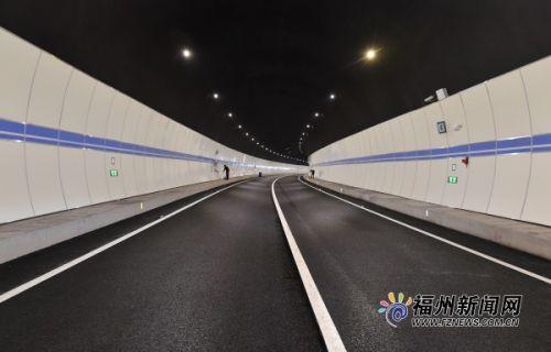 20日上午,在市建发集团下属福州市政建设开发公司该项目经理蒋启忠的带领下,记者乘车从马鞍隧道北洞口进入,7米多宽单向2车道的主线隧道内,施工人员正做着最后的清洁工作,两侧蓝白相间的主题色与黑色防火涂料涂刷的洞顶相互搭配,颜值颇高。在“发光圆球”(反光道钉)与洞内灯光的陪伴下,短短2分钟,车子便从南洞口“钻”出,抵达软件大道沿线。