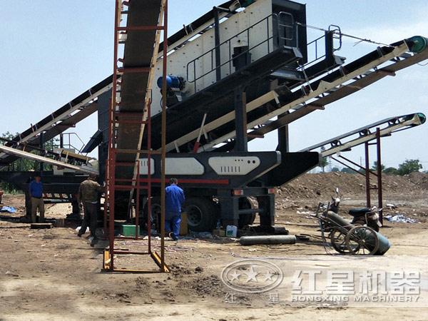 1.从车载系统的配置区分鄂破锤破组合式制砂机:有轮胎式移动破碎站和履带式移动破碎站。