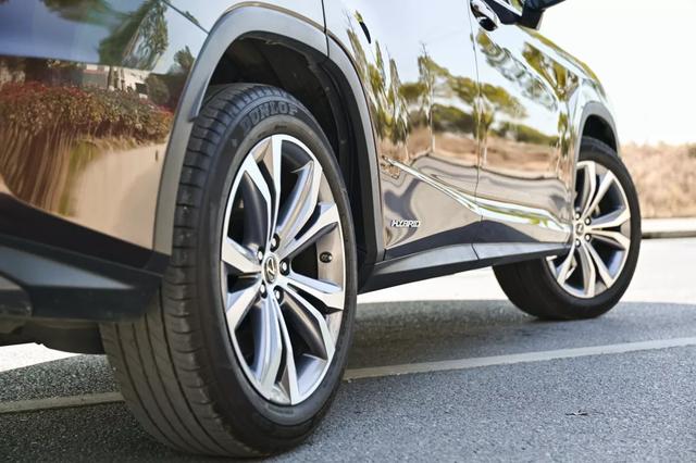 RX450h的适时四驱,在正常行驶阶段基本上还是以前驱为主,后轮的驱动力来自于电机。不过我觉得20寸/8J的原厂轮毂,对于运动模式明显感觉不够用,特别是它的动力这么充沛,如果动力全发挥出来,还是很凶的,配的这套轮毂轮胎实在是抓不住。而且悬架调校偏软,也不适合当成一个性能SUV去驾驶,不过反过来这恰好也是这辆车的优势,悬架软、滤干净,乘坐舒适感特别棒,而且轮下重量轻,也非常利于节能。