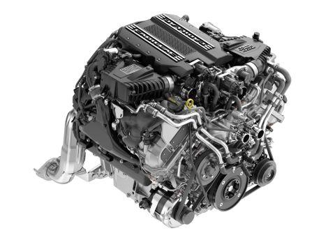 这款发动机是通用的V8机型首次搭载双涡轮增压器,并且采用了“热V”结构,也就是增压器在两排气缸之间,并且催化器也安置在这块区域。这样做的好处就是减少涡轮迟滞,让催化器也能更快起温改善排放,并带来了更紧凑的整机尺寸。当然,这也是工程师克服布局障碍和工程工艺难度之后取得的结果。