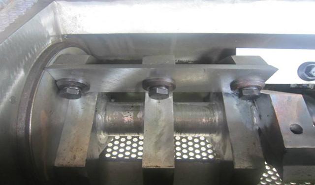 现有的塑料破碎机的切削刀具通常采用整体式、片刀式或爪刀式破碎机调刀视频讲解,这三种形式的刀具皆以间断、瞬间、大面积切割的方式对废旧塑料进行剪切式的粉碎。其中旋转爪刀的结构一般为破碎机调刀视频讲解:在爪刀本体中部开设带有键槽的轴心通孔破碎机调刀视频讲解,在爪刀的外侧边缘设置有一个或一队斜切状刀刃,从而将旋转爪刀固装在转轴上,并使旋转爪刀的刀刃与固定刀具相对应,从而可切割和粉碎塑料。
