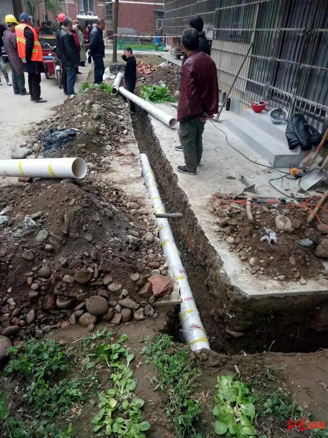 施工人员重新安装了排污管。