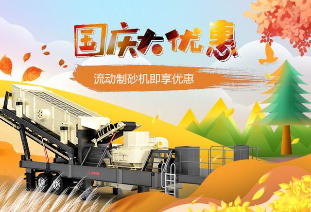 中秋喜团圆东北制砂机价格促销,国庆更精彩!迎双节,庆双节,各行各业,各个商家,都在开办促销活动,当然砂石设备行业也不例外。全新型每小时可生产150吨以上石料的流动制砂机也因价格实惠、品质靠谱更受用户青睐。流动制砂机国庆期间更优惠